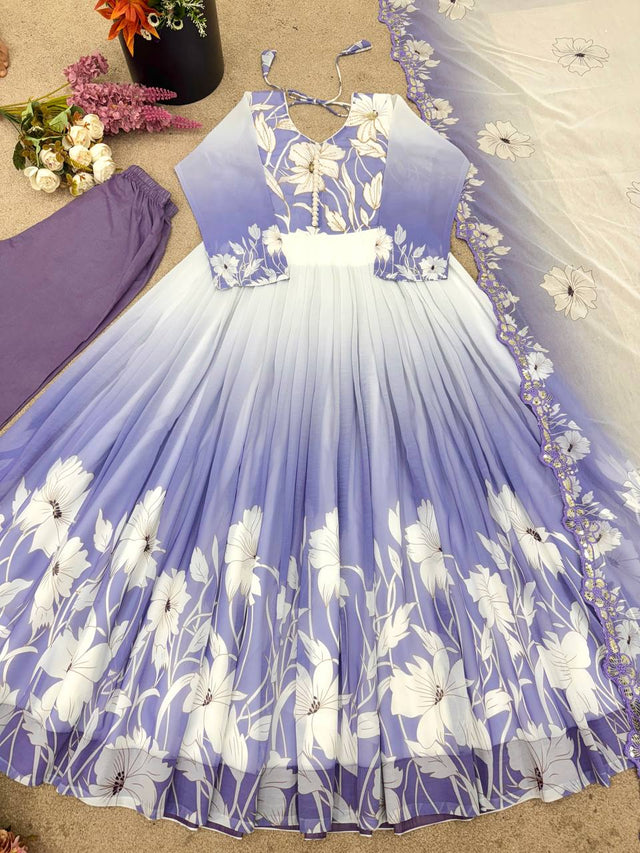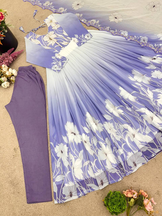 ⢠ā Work :- Digital Print Work with Embroidery Sequence Work