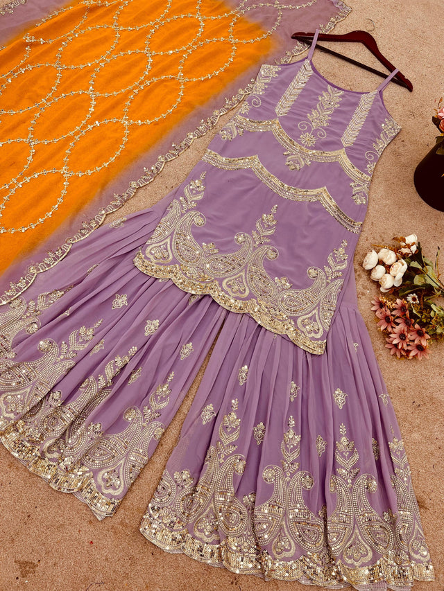 Stylish Lavender Georgette Sequence Work Sharara Suit