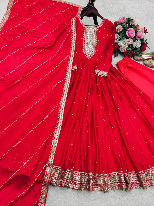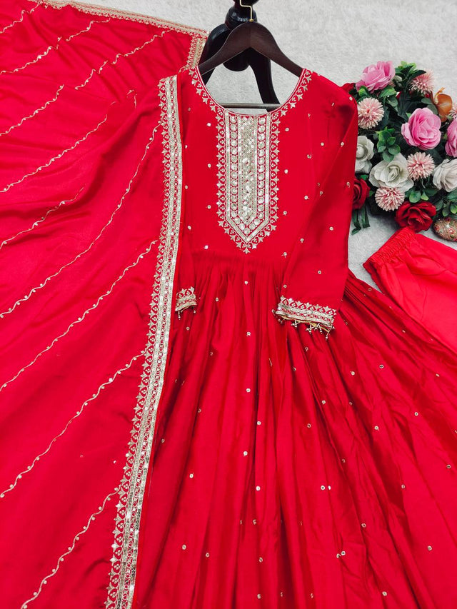 Stylish Red Color Embroidery With Sequence Work Designer Gown