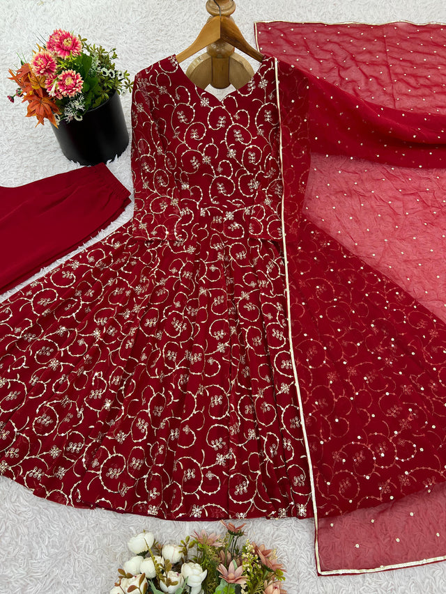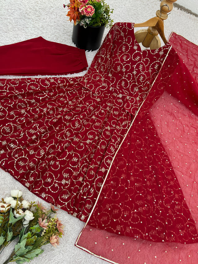 • Fabric: Heavy Faux Georgette With Embroidery Sequence Work With Fully Flair
