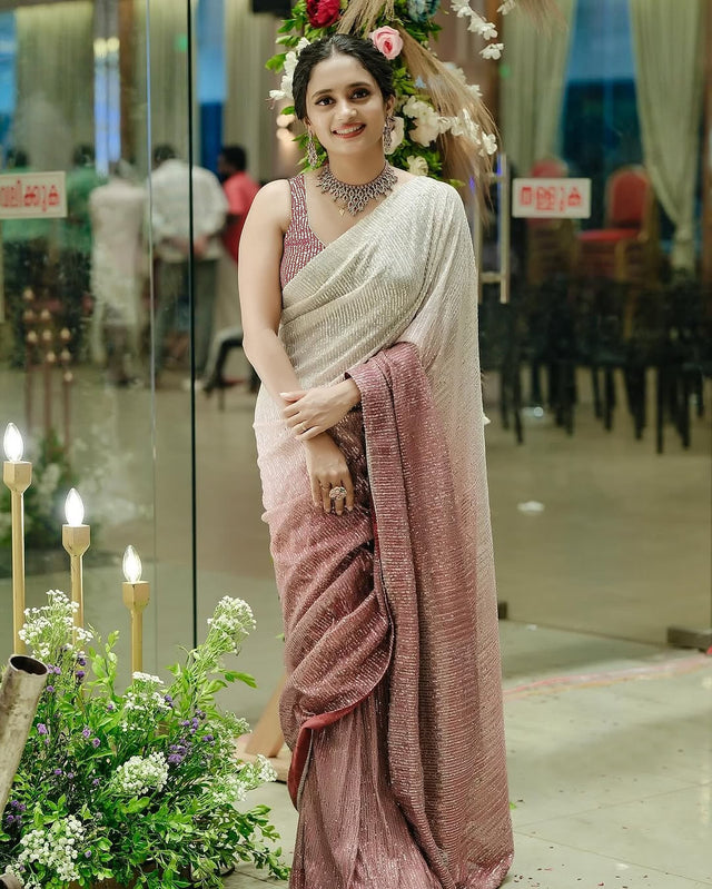 Stylish Sequence Work Double Shaded Saree