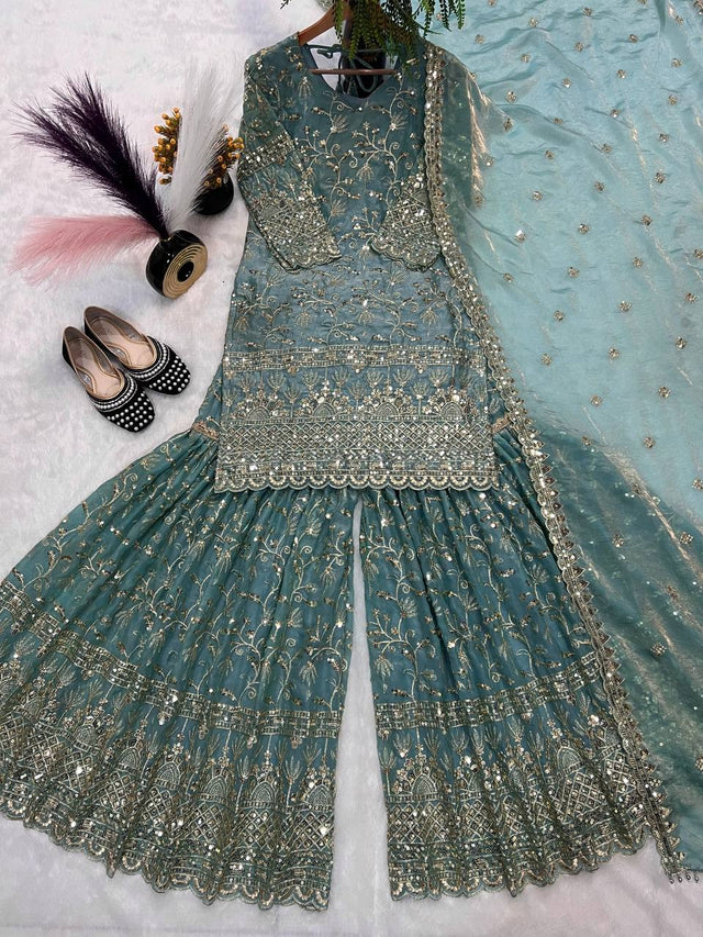 💃Sharara Palazzo : Heavy Fandy Crushi Silk With 5mm Sequence Embroidery Work.
