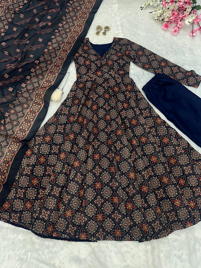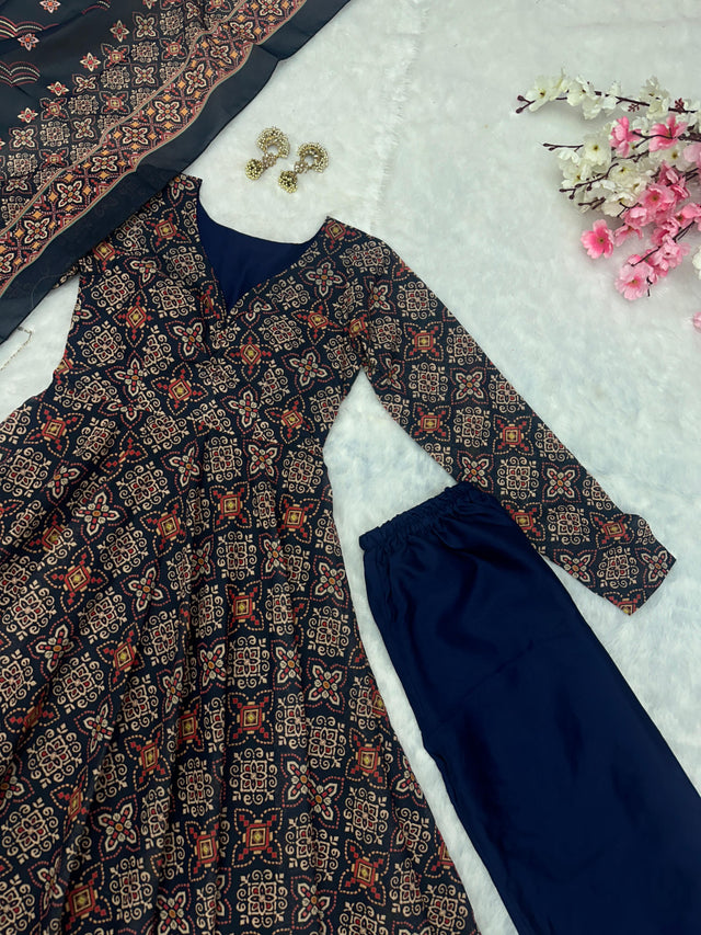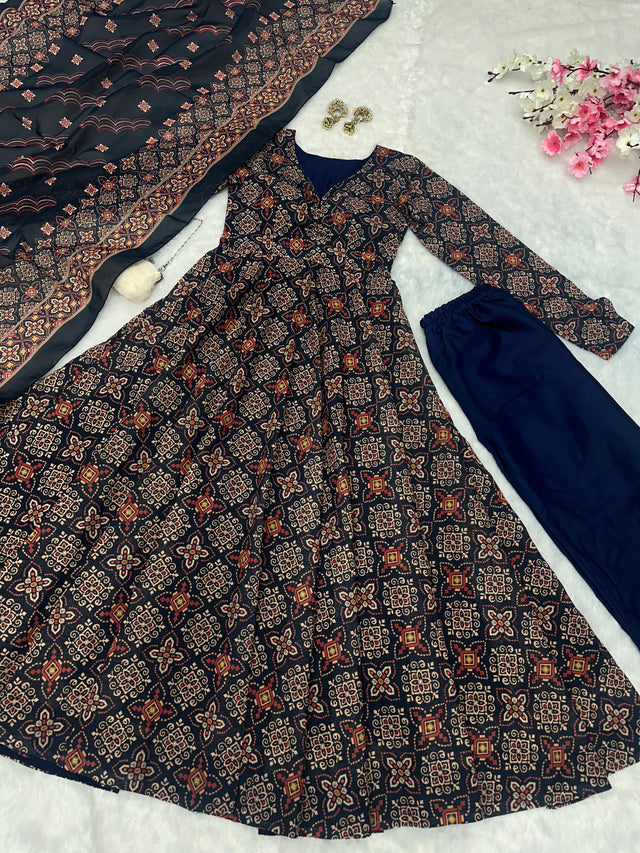 Anarkali - Soft Cotton printed Anarkali huge flair suit đ¸