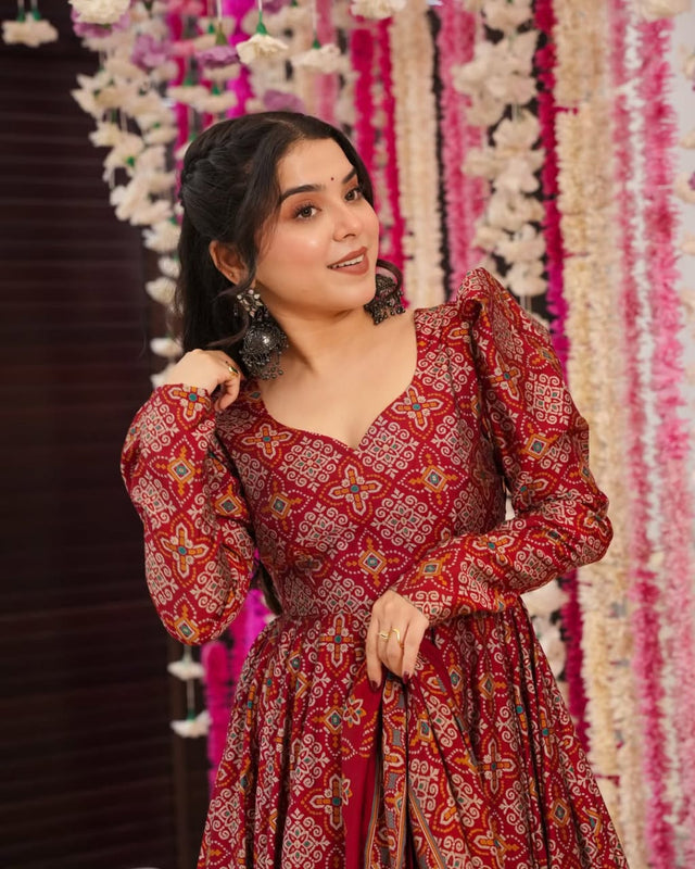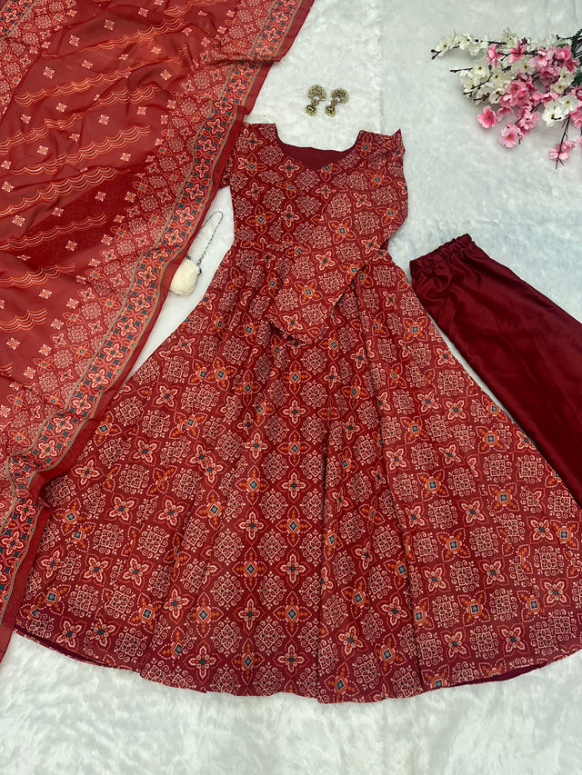 Anarkali - Soft Cotton printed Anarkali huge flair suit đ¸