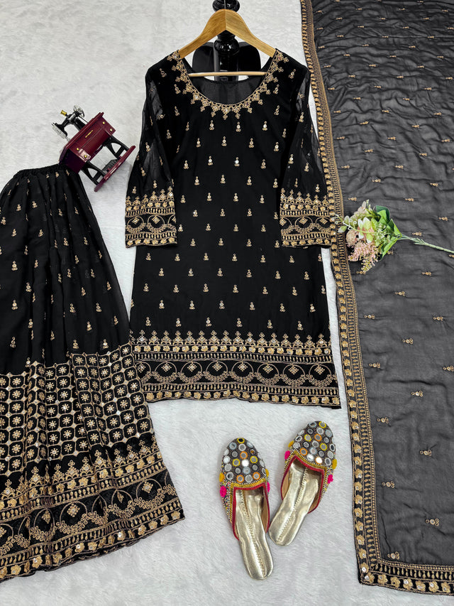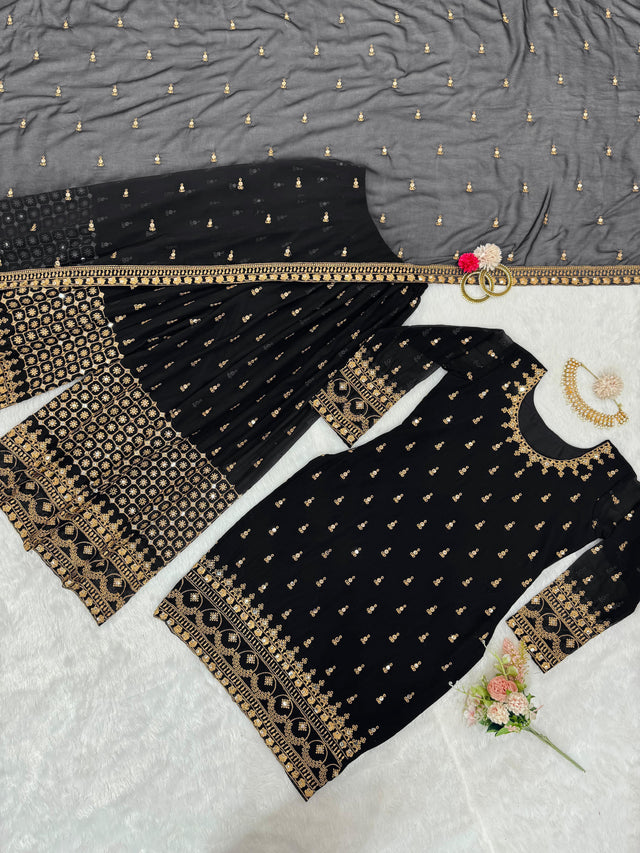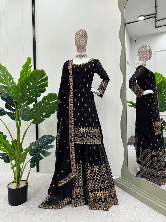 Thread With Sequence Work Black Color Delightful Sharara Suit