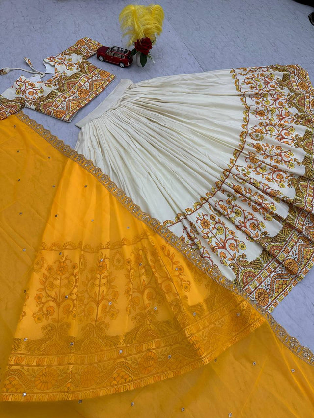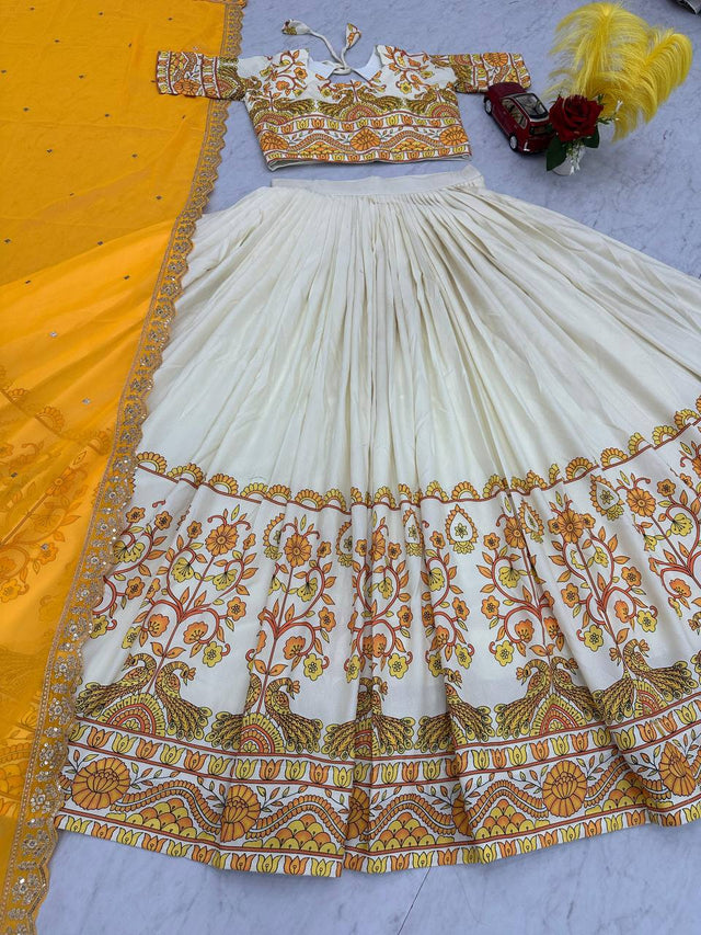 Traditional Wear Kalamkari Print Yellow Color Lehenga Choli