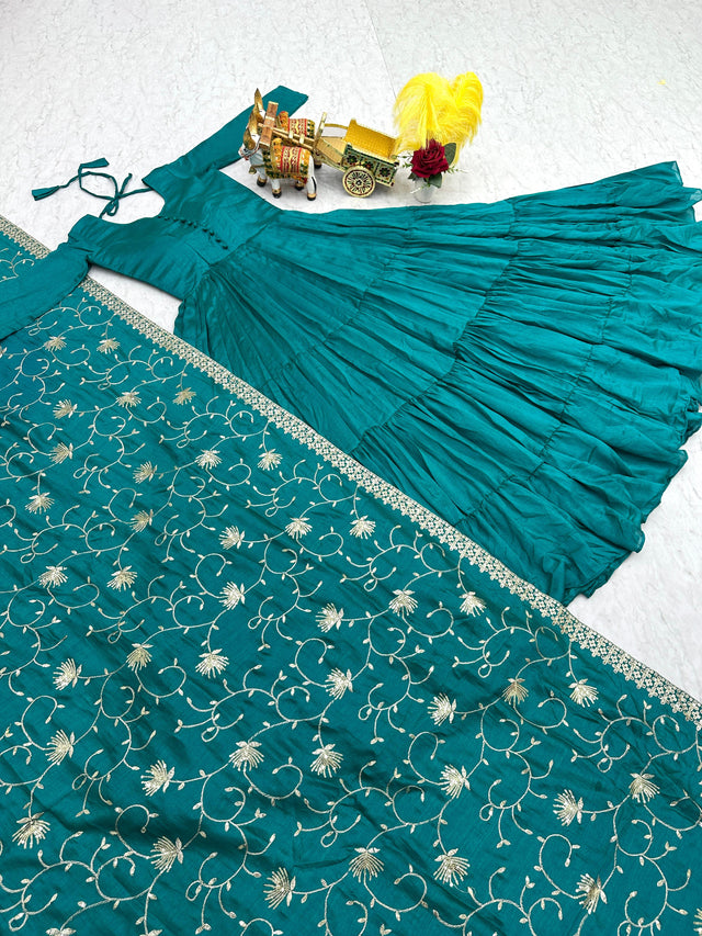 Traditional Wear Vichitra Silk Sky Blue Color Gown