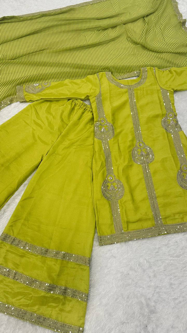 ⏭️ Chinon silk palazzo with sequins & zari work with Elastic waist