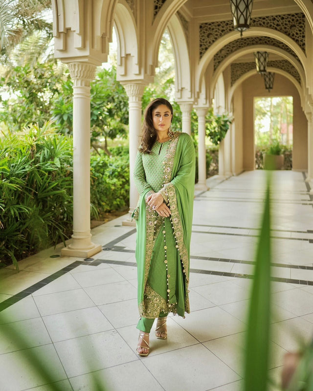 Trendy Green Color Georgette Embroidery Work Palazzo Suit