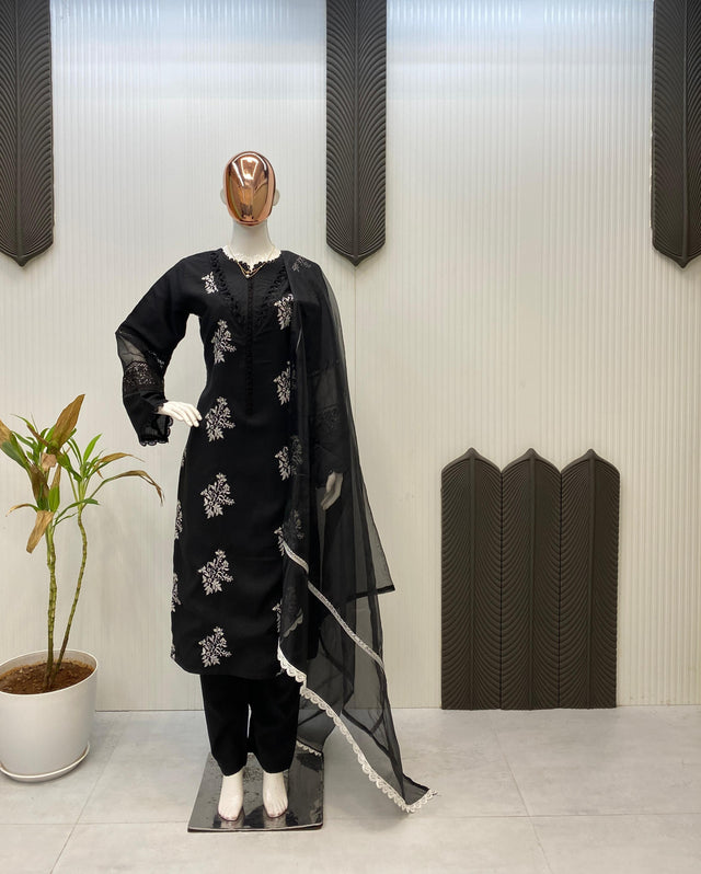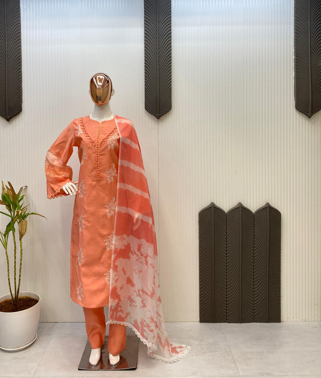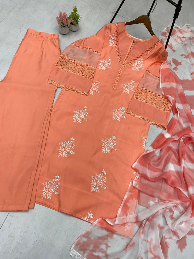 Trendy Peach Color Embroidery Work Straight Salwar Suit