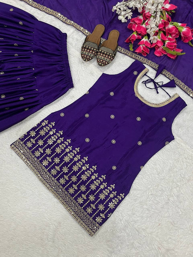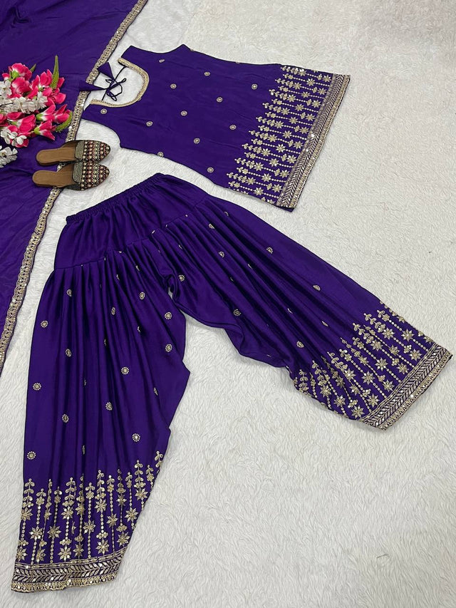 Trendy Purple Color Heavy Embroidery Work Dhoti Suit