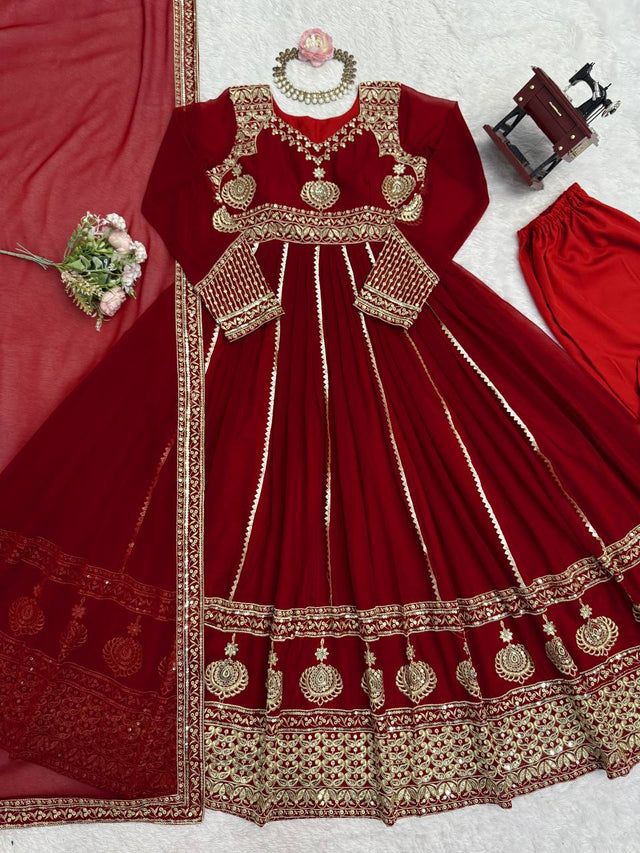 Trendy Red Color Georgette Thread Work Anarkali Gown