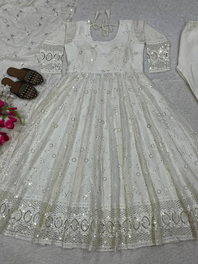 Trendy White Color Georgette Sequence Work Anarkali Suit