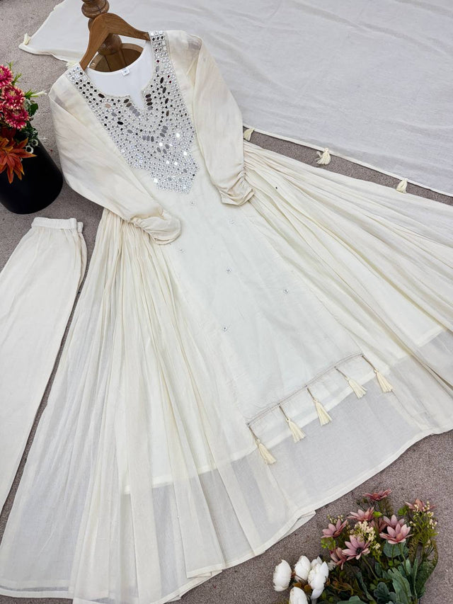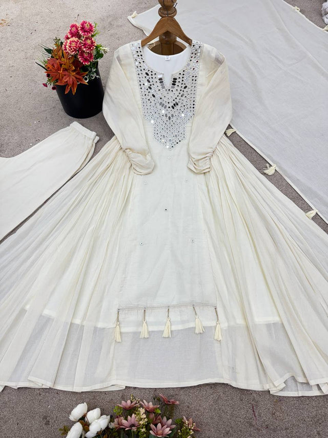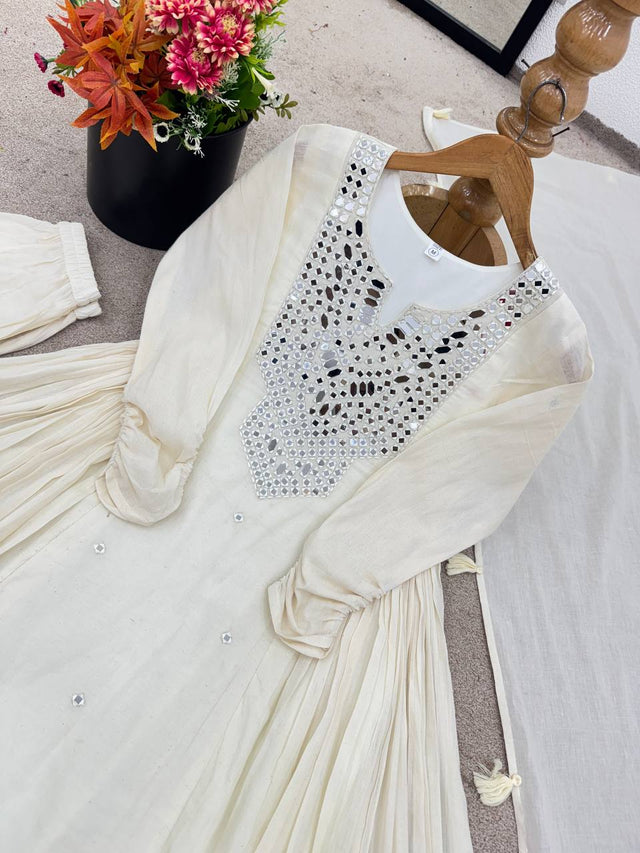👗 Gown Fabric :Pure Khadi cotton With Khatli work with real Mirror
