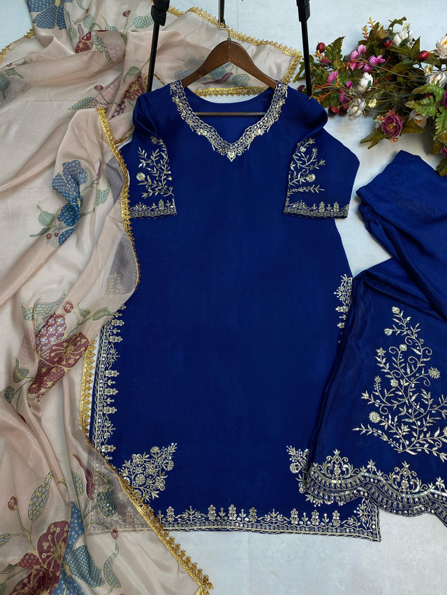 Unique Chinon Embroidery Work Blue Color Sharara Suit