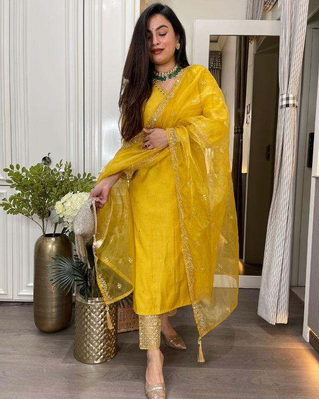 #fabric : Organza With Sequence Embroidery Work,lace On Border And Latkan On Corner