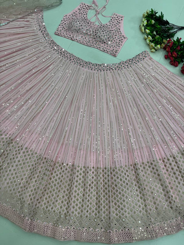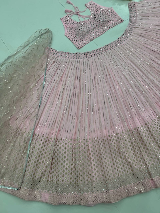 Wedding & Party Wear Real Mirror Hand Work Pink Color Lehenga Choli