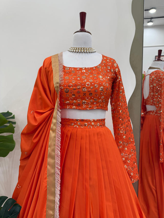 Wedding & Party Wear Sequence Work Orange Color Lehenga Choli