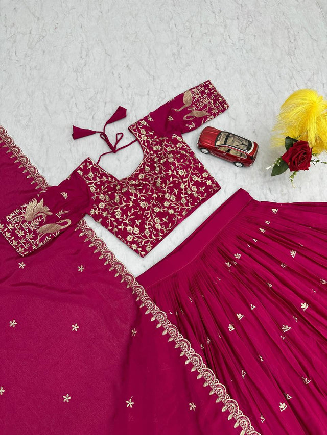 Wedding Wear Embroidery Work Pink Color Lehenga Choli