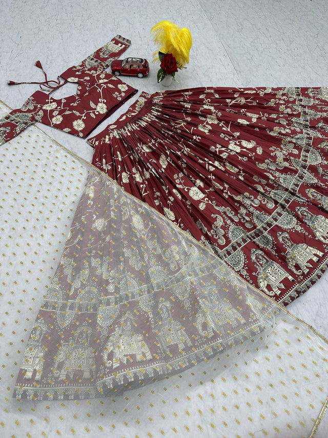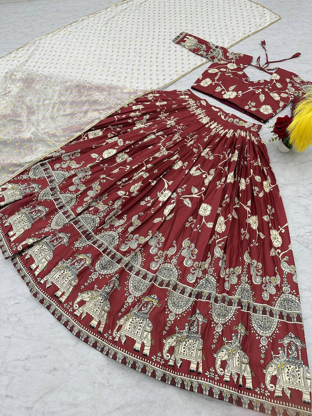 Wedding Wear Heavy Work Marron Color Lehenga Choli