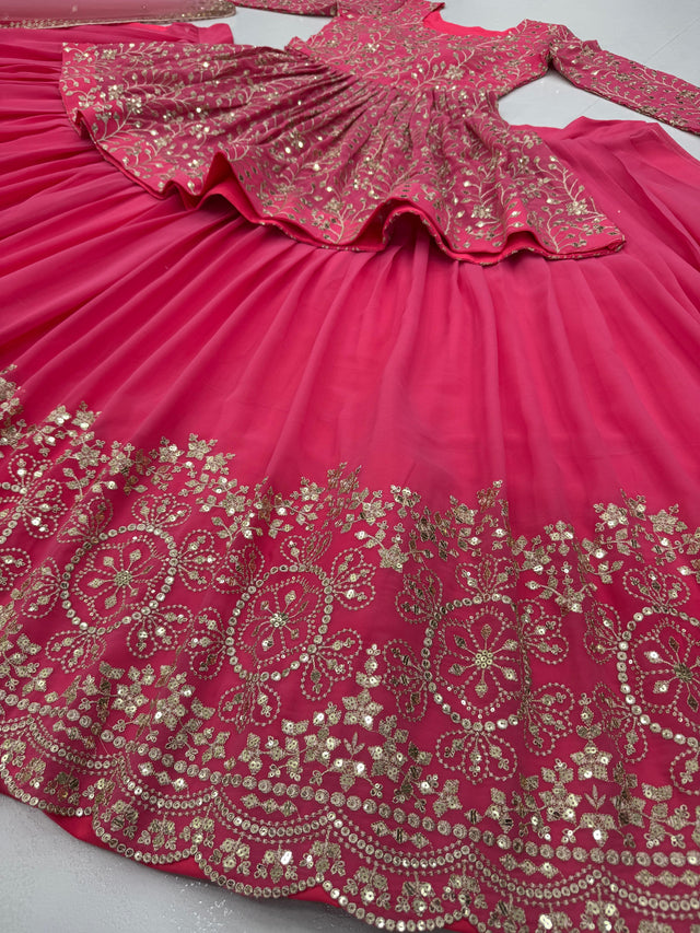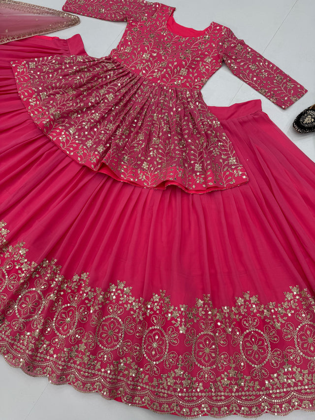 Wedding Wear Heavy Work Pink Color Top With Lehenga