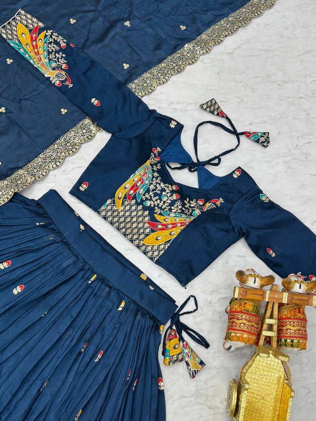 Wedding Wear Sequence & Thread Work Teal Blue Lehenga Choli