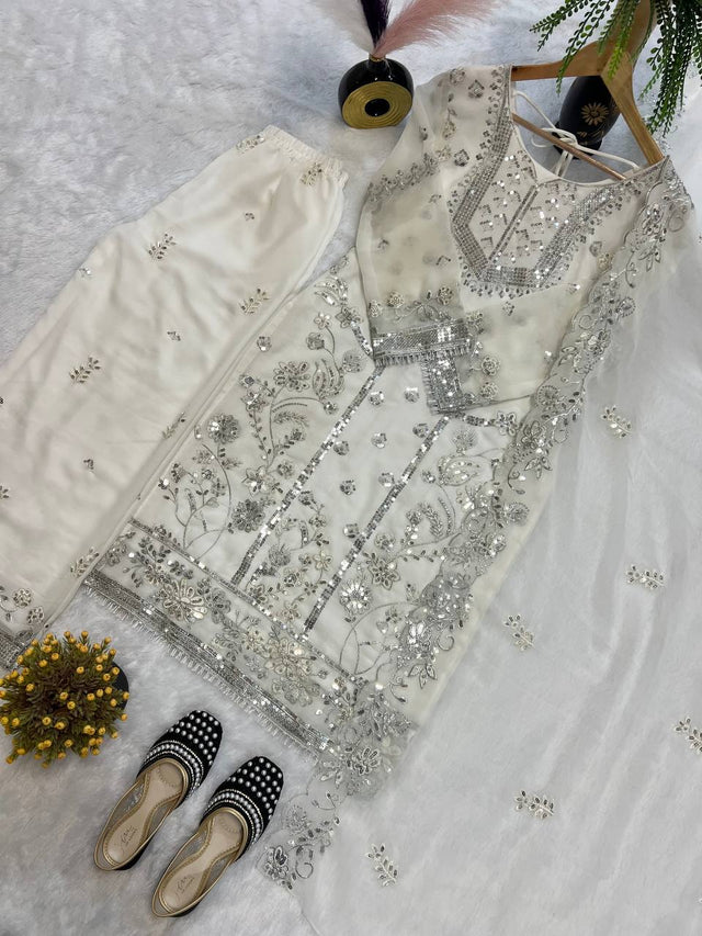 White Color Embroidery Work Innovative Palazzo Suit