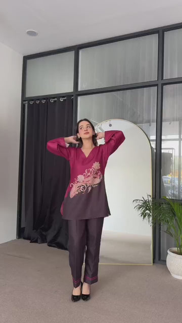 Upgrade your everyday style with this elegant co-ord set made from pure Malai satin silk. HV-9287