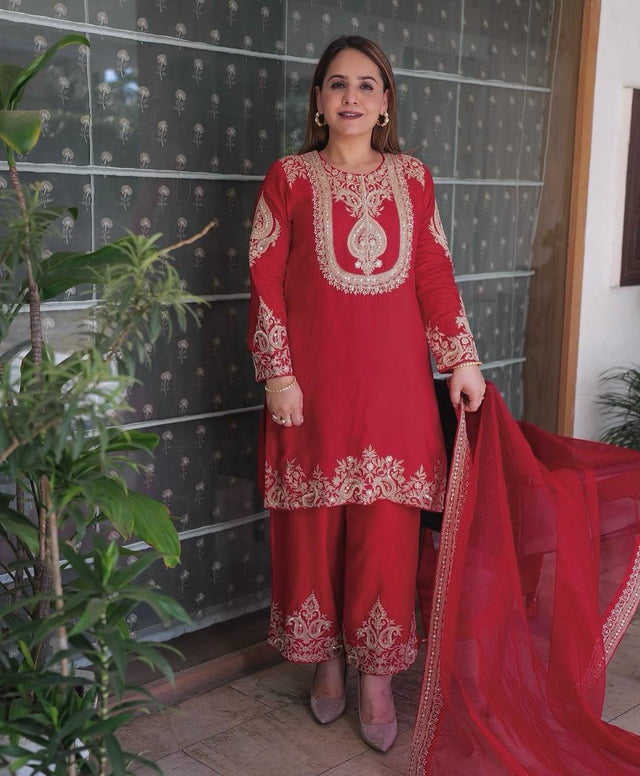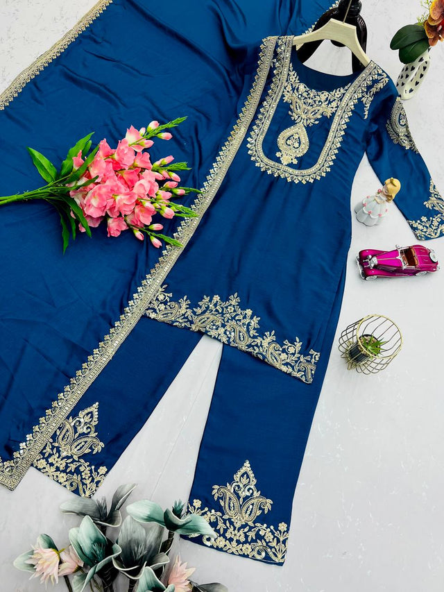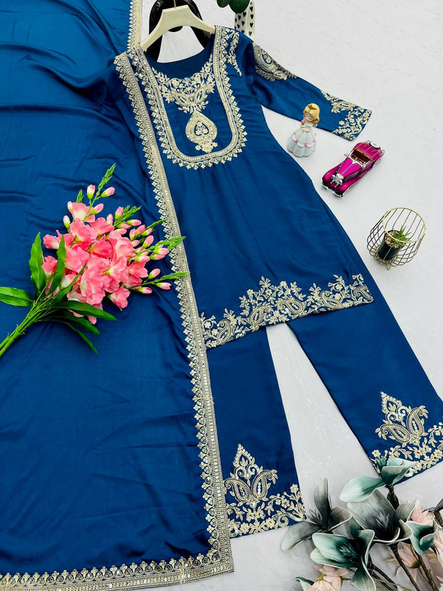 Category: Palazzo Suit, Embroidery Work, Chinon Silk, Party Wear Collection
