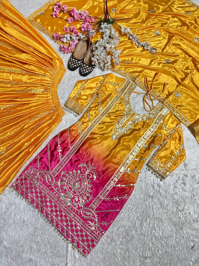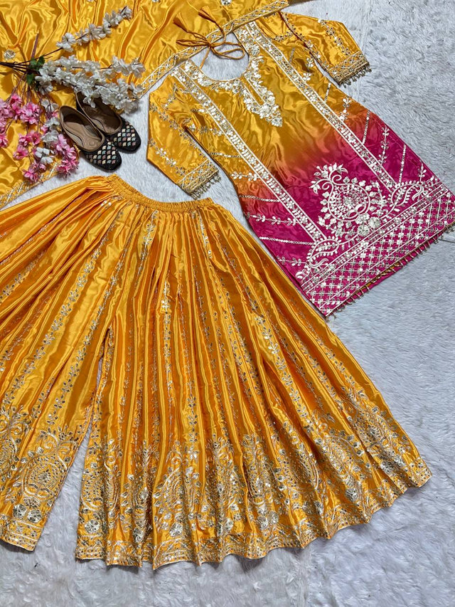 Wonderful Coding Sequence Work Yellow Color Sharara Suit