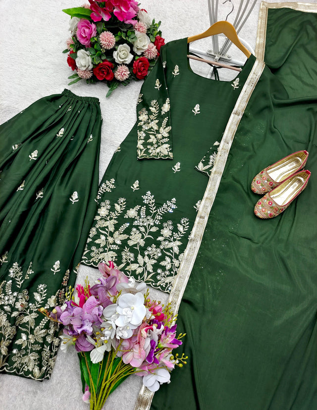 Wonderful Embroidery Work Green Color Sharara Suit