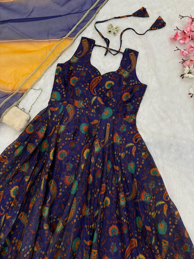 Anarkali gown - Digital printed Jimmy organza silk suit with huge flair 🌸