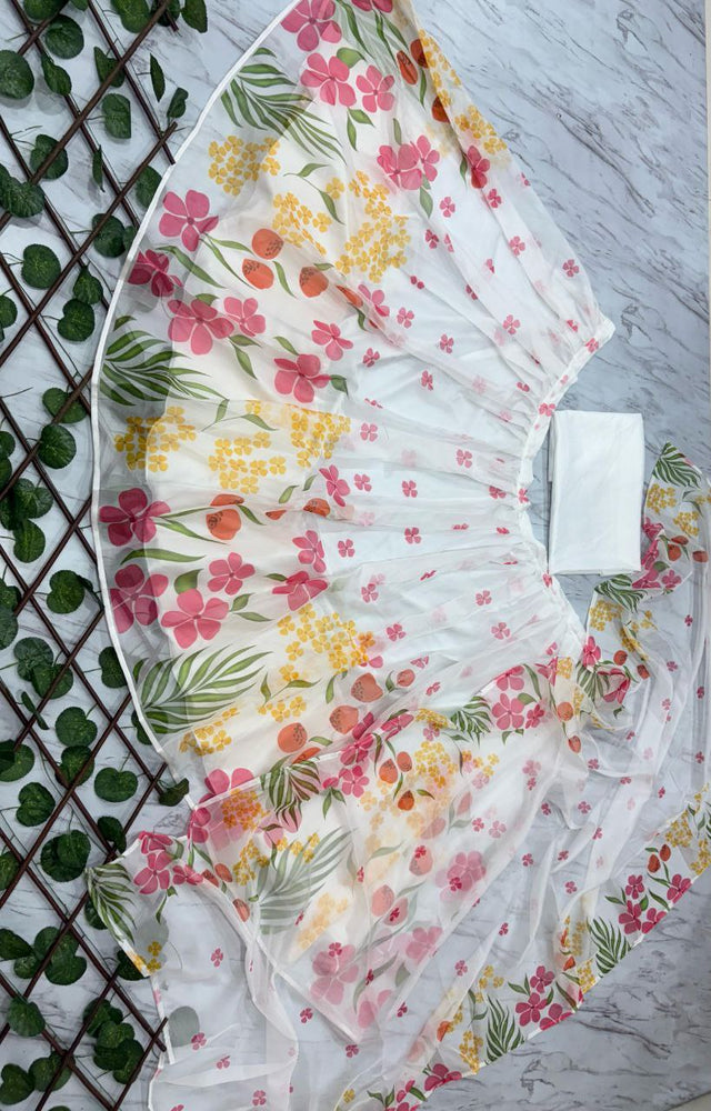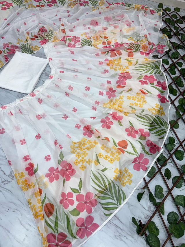 Wonderful Floral Print Silk White Color Lehenga Choli