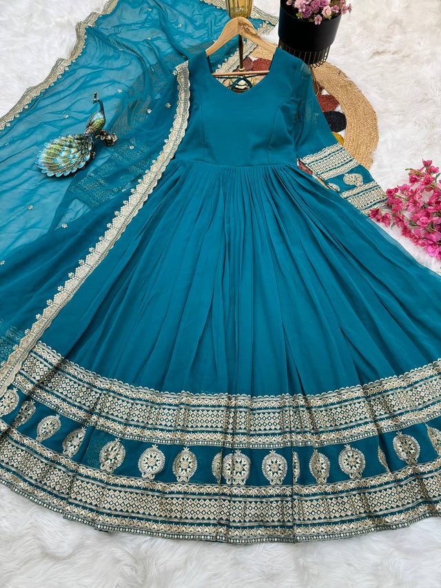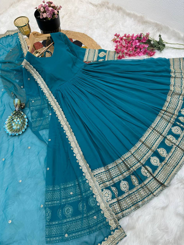 Wonderful Georgette Embroidery Work Sky Blue Color Gown