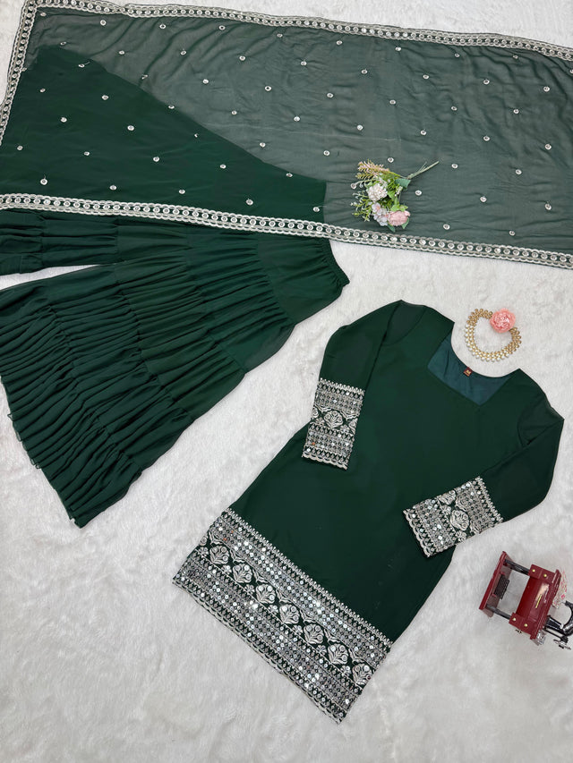 Wonderful Gorgette Sequnce Work Green Color Sharara Suit