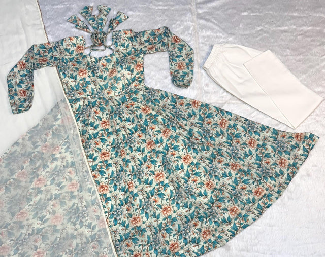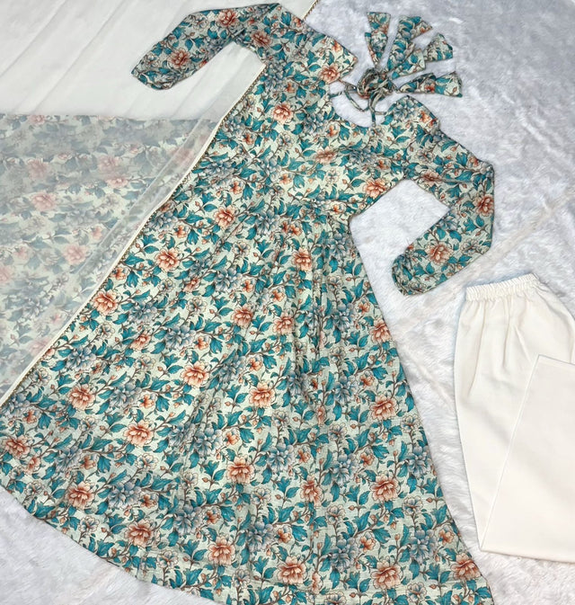 Wonderful Multi Design With Sky Color Print Anarkali Suit