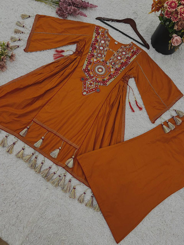Wonderful Orange Embroidery Work Co-ord Set