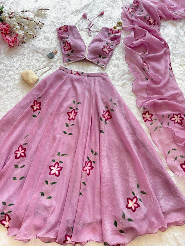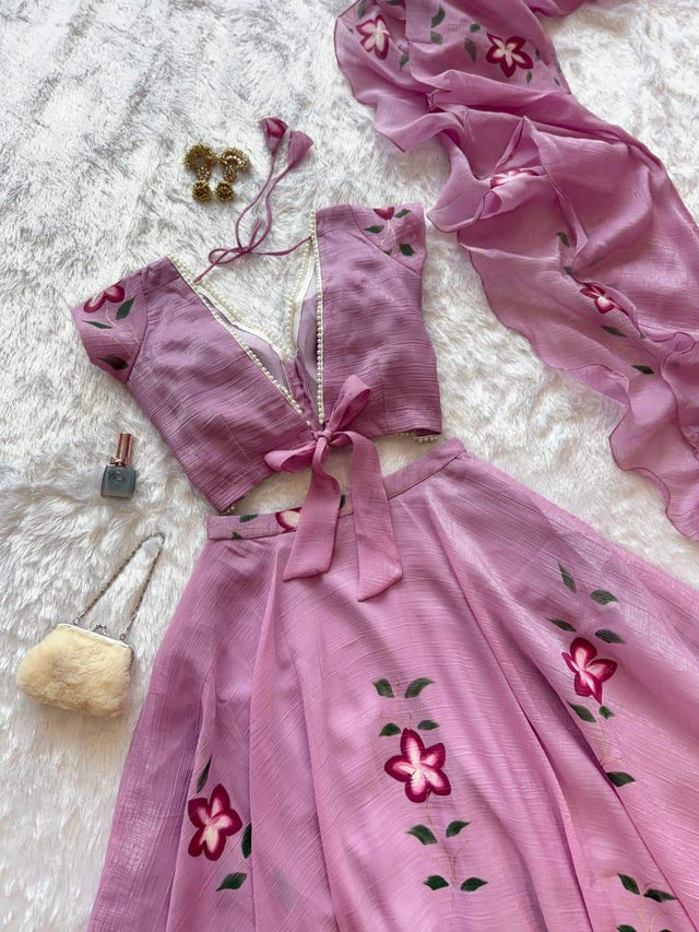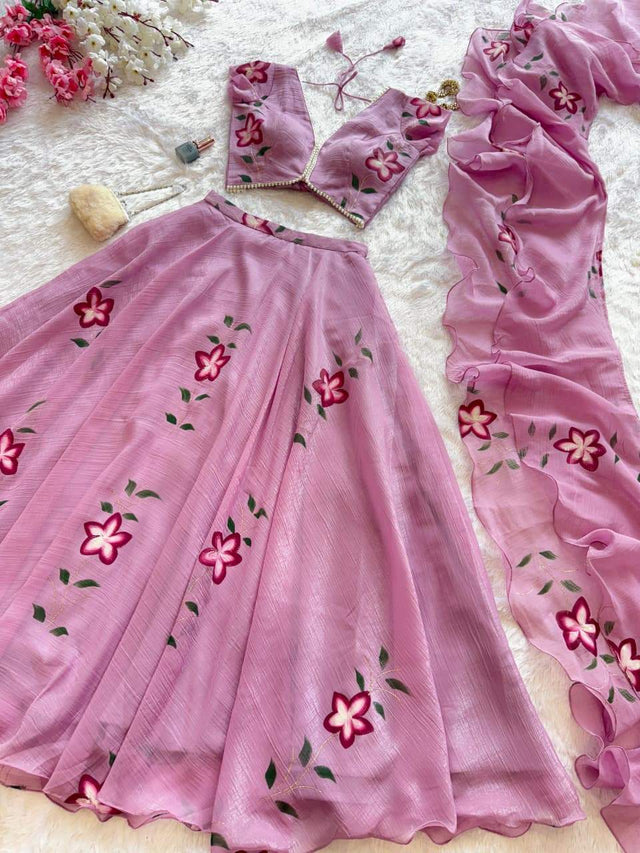 lehenga - Fendi Crush Handpaint 8 mtr flair lehenga with canvas patta 🌸