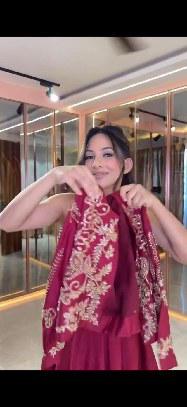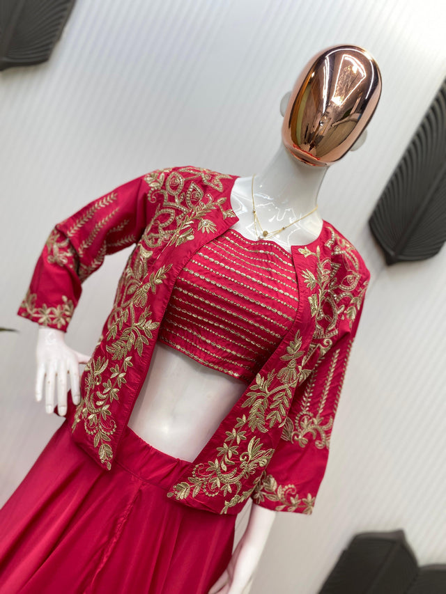 Wonderful Sequence Embroidery Work Red Color Lehenga Choli With Shrug