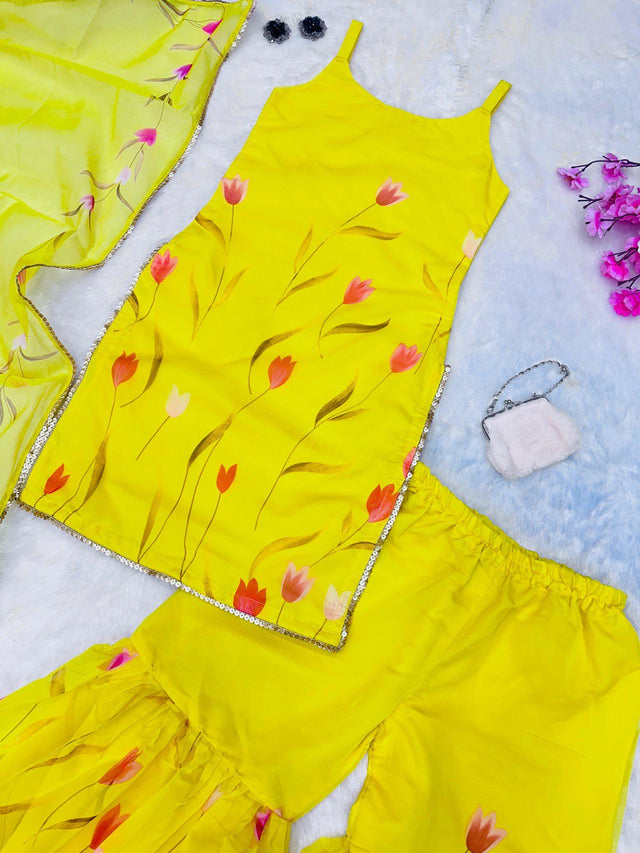 Yellow Color Haldi Wear Floral Printed Sharara Suit